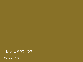 Hex #887127 Color is a normal yellow color and the nearest color is Spanish Bistre #807532. Hex code #887127 and RGB value is rgb(136,113,39). In RGB color space, this color is composed of 53% red, 44% green, 15% blue, In CMYK color space, this color is composed of 0% cyan, 17% magenta, 71% yellow , 47% black , In HSL color space, this color has a hue angle of 46° , 55% saturation and 34% lightness.