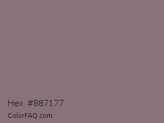 Hex #887177 Color is a normal rose color and the nearest color is Empress #817377. Hex code #887177 and RGB value is rgb(136,113,119). In RGB color space, this color is composed of 53% red, 44% green, 47% blue, In CMYK color space, this color is composed of 0% cyan, 17% magenta, 13% yellow , 47% black , In HSL color space, this color has a hue angle of 344° , 9% saturation and 49% lightness.