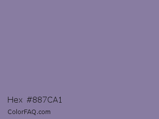 Hex #887ca1 Color is a normal indigo color and the nearest color is Roman Silver #838996. Hex code #887ca1 and RGB value is rgb(136,124,161). In RGB color space, this color is composed of 53% red, 49% green, 63% blue, In CMYK color space, this color is composed of 16% cyan, 23% magenta, 0% yellow , 37% black , In HSL color space, this color has a hue angle of 259° , 16% saturation and 56% lightness.
