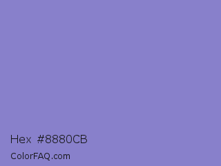 Hex #8880cb Color is a light indigo color and the nearest color is Ube #8878c3. Hex code #8880cb and RGB value is rgb(136,128,203). In RGB color space, this color is composed of 53% red, 50% green, 80% blue, In CMYK color space, this color is composed of 33% cyan, 37% magenta, 0% yellow , 20% black , In HSL color space, this color has a hue angle of 246° , 42% saturation and 65% lightness.