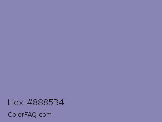 Hex #8885b4 Color is a light indigo color and the nearest color is Wild Blue Yonder #7a89b8. Hex code #8885b4 and RGB value is rgb(136,133,180). In RGB color space, this color is composed of 53% red, 52% green, 71% blue, In CMYK color space, this color is composed of 24% cyan, 26% magenta, 0% yellow , 29% black , In HSL color space, this color has a hue angle of 244° , 24% saturation and 61% lightness.