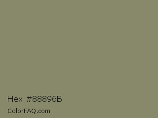 Hex #88896b Color is a normal yellow color and the nearest color is Avocado Pulp #888d65. Hex code #88896b and RGB value is rgb(136,137,107). In RGB color space, this color is composed of 53% red, 54% green, 42% blue, In CMYK color space, this color is composed of 1% cyan, 0% magenta, 22% yellow , 46% black , In HSL color space, this color has a hue angle of 62° , 12% saturation and 48% lightness.