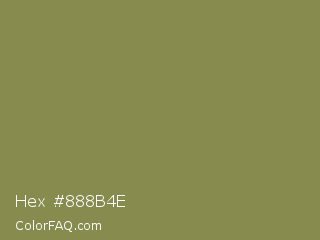 Hex #888b4e Color is a normal yellow color and the nearest color is Dark Tan #918151. Hex code #888b4e and RGB value is rgb(136,139,78). In RGB color space, this color is composed of 53% red, 55% green, 31% blue, In CMYK color space, this color is composed of 2% cyan, 0% magenta, 44% yellow , 45% black , In HSL color space, this color has a hue angle of 63° , 28% saturation and 43% lightness.