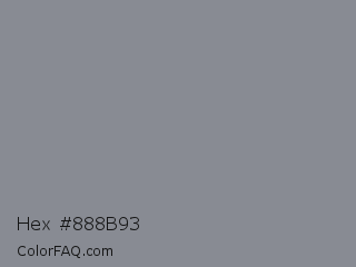 Hex #888b93 Color is a normal blue color and the nearest color is Oslo Gray #878d91. Hex code #888b93 and RGB value is rgb(136,139,147). In RGB color space, this color is composed of 53% red, 55% green, 58% blue, In CMYK color space, this color is composed of 7% cyan, 5% magenta, 0% yellow , 42% black , In HSL color space, this color has a hue angle of 224° , 5% saturation and 55% lightness.
