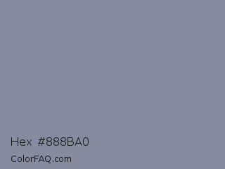 Hex #888ba0 Color is a normal blue color and the nearest color is Manatee Crayola #8d90a1. Hex code #888ba0 and RGB value is rgb(136,139,160). In RGB color space, this color is composed of 53% red, 55% green, 63% blue, In CMYK color space, this color is composed of 15% cyan, 13% magenta, 0% yellow , 37% black , In HSL color space, this color has a hue angle of 233° , 11% saturation and 58% lightness.