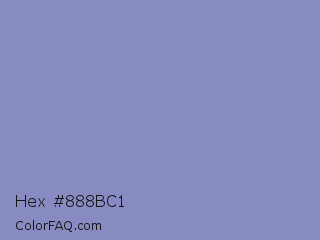 Hex #888bc1 Color is a light blue color and the nearest color is Wild Blue Yonder #7a89b8. Hex code #888bc1 and RGB value is rgb(136,139,193). In RGB color space, this color is composed of 53% red, 55% green, 76% blue, In CMYK color space, this color is composed of 30% cyan, 28% magenta, 0% yellow , 24% black , In HSL color space, this color has a hue angle of 237° , 31% saturation and 65% lightness.
