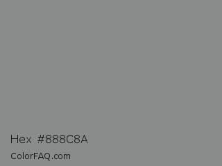 Hex #888c8a Color is a normal green color and the nearest color is Stack #8a8f8a. Hex code #888c8a and RGB value is rgb(136,140,138). In RGB color space, this color is composed of 53% red, 55% green, 54% blue, In CMYK color space, this color is composed of 3% cyan, 0% magenta, 1% yellow , 45% black , In HSL color space, this color has a hue angle of 150° , 2% saturation and 54% lightness.