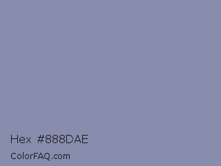 Hex #888dae Color is a light blue color and the nearest color is Cool Grey #8c92ac. Hex code #888dae and RGB value is rgb(136,141,174). In RGB color space, this color is composed of 53% red, 55% green, 68% blue, In CMYK color space, this color is composed of 22% cyan, 19% magenta, 0% yellow , 32% black , In HSL color space, this color has a hue angle of 232° , 19% saturation and 61% lightness.