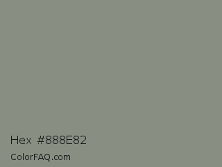 Hex #888e82 Color is a normal green color and the nearest color is Dolphin Gray #828e84. Hex code #888e82 and RGB value is rgb(136,142,130). In RGB color space, this color is composed of 53% red, 56% green, 51% blue, In CMYK color space, this color is composed of 4% cyan, 0% magenta, 8% yellow , 44% black , In HSL color space, this color has a hue angle of 90° , 5% saturation and 53% lightness.