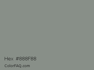 Hex #888f88 Color is a normal green color and the nearest color is Stack #8a8f8a. Hex code #888f88 and RGB value is rgb(136,143,136). In RGB color space, this color is composed of 53% red, 56% green, 53% blue, In CMYK color space, this color is composed of 5% cyan, 0% magenta, 5% yellow , 44% black , In HSL color space, this color has a hue angle of 120° , 3% saturation and 55% lightness.