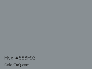 Hex #888f93 Color is a normal blue color and the nearest color is Oslo Gray #878d91. Hex code #888f93 and RGB value is rgb(136,143,147). In RGB color space, this color is composed of 53% red, 56% green, 58% blue, In CMYK color space, this color is composed of 7% cyan, 3% magenta, 0% yellow , 42% black , In HSL color space, this color has a hue angle of 202° , 5% saturation and 55% lightness.