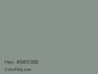 Hex #88938b Color is a normal green color and the nearest color is Stack #8a8f8a. Hex code #88938b and RGB value is rgb(136,147,139). In RGB color space, this color is composed of 53% red, 58% green, 55% blue, In CMYK color space, this color is composed of 7% cyan, 0% magenta, 5% yellow , 42% black , In HSL color space, this color has a hue angle of 136° , 5% saturation and 55% lightness.