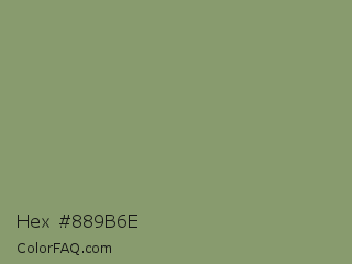 Hex #889b6e Color is a normal green color and the nearest color is Artichoke #8f9779. Hex code #889b6e and RGB value is rgb(136,155,110). In RGB color space, this color is composed of 53% red, 61% green, 43% blue, In CMYK color space, this color is composed of 12% cyan, 0% magenta, 29% yellow , 39% black , In HSL color space, this color has a hue angle of 85° , 18% saturation and 52% lightness.