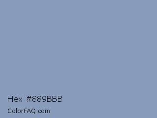 Hex #889bbb Color is a light blue color and the nearest color is Bali Hai #859faf. Hex code #889bbb and RGB value is rgb(136,155,187). In RGB color space, this color is composed of 53% red, 61% green, 73% blue, In CMYK color space, this color is composed of 27% cyan, 17% magenta, 0% yellow , 27% black , In HSL color space, this color has a hue angle of 218° , 27% saturation and 63% lightness.