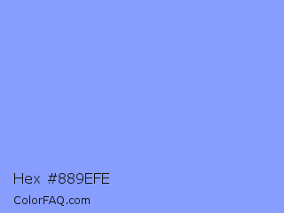Hex #889efe Color is a light blue color and the nearest color is Portage #8b9fee. Hex code #889efe and RGB value is rgb(136,158,254). In RGB color space, this color is composed of 53% red, 62% green, 100% blue, In CMYK color space, this color is composed of 46% cyan, 38% magenta, 0% yellow , 0% black , In HSL color space, this color has a hue angle of 229° , 98% saturation and 76% lightness.