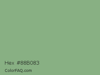 Hex #88b083 Color is a normal green color and the nearest color is Bay Leaf #7da98d. Hex code #88b083 and RGB value is rgb(136,176,131). In RGB color space, this color is composed of 53% red, 69% green, 51% blue, In CMYK color space, this color is composed of 23% cyan, 0% magenta, 26% yellow , 31% black , In HSL color space, this color has a hue angle of 113° , 22% saturation and 60% lightness.