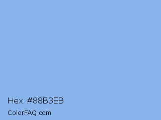 Hex #88b3eb Color is a light blue color and the nearest color is Jordy Blue #8ab9f1. Hex code #88b3eb and RGB value is rgb(136,179,235). In RGB color space, this color is composed of 53% red, 70% green, 92% blue, In CMYK color space, this color is composed of 42% cyan, 24% magenta, 0% yellow , 8% black , In HSL color space, this color has a hue angle of 214° , 71% saturation and 73% lightness.