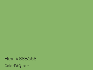 Hex #88b568 Color is a normal green color and the nearest color is Dollar Bill #85bb65. Hex code #88b568 and RGB value is rgb(136,181,104). In RGB color space, this color is composed of 53% red, 71% green, 41% blue, In CMYK color space, this color is composed of 25% cyan, 0% magenta, 43% yellow , 29% black , In HSL color space, this color has a hue angle of 95° , 34% saturation and 56% lightness.