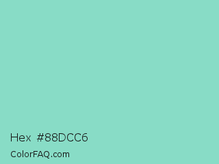 Hex #88dcc6 Color is a light cyan color and the nearest color is Pearl Aqua #88d8c0. Hex code #88dcc6 and RGB value is rgb(136,220,198). In RGB color space, this color is composed of 53% red, 86% green, 78% blue, In CMYK color space, this color is composed of 38% cyan, 0% magenta, 10% yellow , 14% black , In HSL color space, this color has a hue angle of 164° , 55% saturation and 70% lightness.