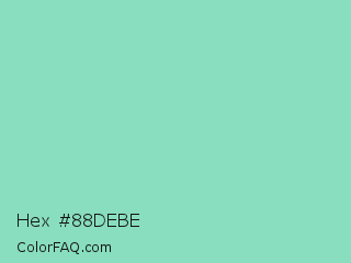 Hex #88debe Color is a light green color and the nearest color is Pearl Aqua #88d8c0. Hex code #88debe and RGB value is rgb(136,222,190). In RGB color space, this color is composed of 53% red, 87% green, 75% blue, In CMYK color space, this color is composed of 39% cyan, 0% magenta, 14% yellow , 13% black , In HSL color space, this color has a hue angle of 158° , 57% saturation and 70% lightness.