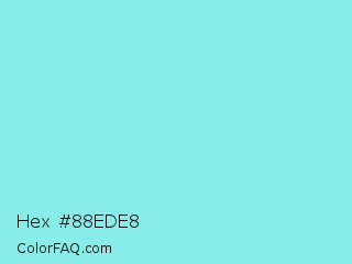 Hex #88ede8 Color is a light cyan color and the nearest color is Riptide #8be6d8. Hex code #88ede8 and RGB value is rgb(136,237,232). In RGB color space, this color is composed of 53% red, 93% green, 91% blue, In CMYK color space, this color is composed of 43% cyan, 0% magenta, 2% yellow , 7% black , In HSL color space, this color has a hue angle of 177° , 74% saturation and 73% lightness.