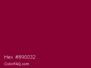 Hex #890032 Color is a dark rose color and the nearest color is Paprika #8d0226. Hex code #890032 and RGB value is rgb(137,0,50). In RGB color space, this color is composed of 54% red, 0% green, 20% blue, In CMYK color space, this color is composed of 0% cyan, 100% magenta, 64% yellow , 46% black , In HSL color space, this color has a hue angle of 338° , 100% saturation and 27% lightness.