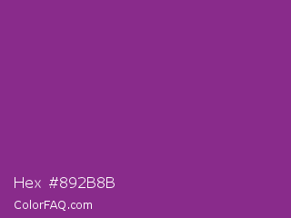 Hex #892b8b Color is a normal magenta color and the nearest color is Vivid Violet #803790. Hex code #892b8b and RGB value is rgb(137,43,139). In RGB color space, this color is composed of 54% red, 17% green, 55% blue, In CMYK color space, this color is composed of 1% cyan, 69% magenta, 0% yellow , 45% black , In HSL color space, this color has a hue angle of 299° , 53% saturation and 36% lightness.