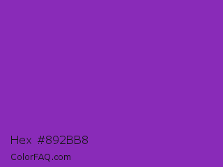 Hex #892bb8 Color is a normal purple color and the nearest color is Dark Orchid #9932cc. Hex code #892bb8 and RGB value is rgb(137,43,184). In RGB color space, this color is composed of 54% red, 17% green, 72% blue, In CMYK color space, this color is composed of 26% cyan, 77% magenta, 0% yellow , 28% black , In HSL color space, this color has a hue angle of 280° , 62% saturation and 45% lightness.