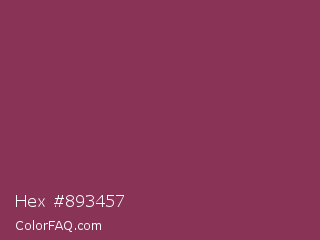 Hex #893457 Color is a normal rose color and the nearest color is Camelot #893456. Hex code #893457 and RGB value is rgb(137,52,87). In RGB color space, this color is composed of 54% red, 20% green, 34% blue, In CMYK color space, this color is composed of 0% cyan, 62% magenta, 36% yellow , 46% black , In HSL color space, this color has a hue angle of 335° , 45% saturation and 37% lightness.