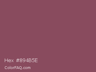 Hex #894b5e Color is a normal rose color and the nearest color is Cannon Pink #894367. Hex code #894b5e and RGB value is rgb(137,75,94). In RGB color space, this color is composed of 54% red, 29% green, 37% blue, In CMYK color space, this color is composed of 0% cyan, 45% magenta, 31% yellow , 46% black , In HSL color space, this color has a hue angle of 342° , 29% saturation and 42% lightness.