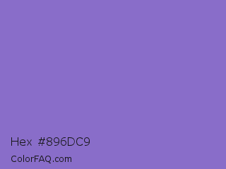 Hex #896dc9 Color is a light indigo color and the nearest color is Middle Blue Purple #8b72be. Hex code #896dc9 and RGB value is rgb(137,109,201). In RGB color space, this color is composed of 54% red, 43% green, 79% blue, In CMYK color space, this color is composed of 32% cyan, 46% magenta, 0% yellow , 21% black , In HSL color space, this color has a hue angle of 258° , 46% saturation and 61% lightness.