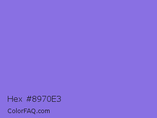 Hex #8970e3 Color is a light indigo color and the nearest color is Medium Purple #9370db. Hex code #8970e3 and RGB value is rgb(137,112,227). In RGB color space, this color is composed of 54% red, 44% green, 89% blue, In CMYK color space, this color is composed of 40% cyan, 51% magenta, 0% yellow , 11% black , In HSL color space, this color has a hue angle of 253° , 67% saturation and 66% lightness.