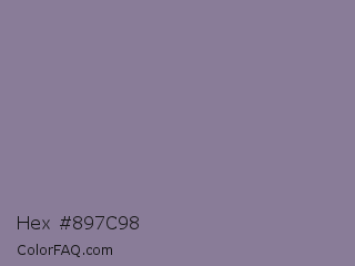 Hex #897c98 Color is a normal violet color and the nearest color is Mamba #8e8190. Hex code #897c98 and RGB value is rgb(137,124,152). In RGB color space, this color is composed of 54% red, 49% green, 60% blue, In CMYK color space, this color is composed of 10% cyan, 18% magenta, 0% yellow , 40% black , In HSL color space, this color has a hue angle of 268° , 12% saturation and 54% lightness.