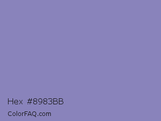 Hex #8983bb Color is a light indigo color and the nearest color is Ube #8878c3. Hex code #8983bb and RGB value is rgb(137,131,187). In RGB color space, this color is composed of 54% red, 51% green, 73% blue, In CMYK color space, this color is composed of 27% cyan, 30% magenta, 0% yellow , 27% black , In HSL color space, this color has a hue angle of 246° , 29% saturation and 62% lightness.