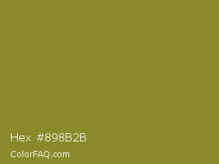 Hex #898b2b Color is a normal yellow color and the nearest color is Sycamore #908d39. Hex code #898b2b and RGB value is rgb(137,139,43). In RGB color space, this color is composed of 54% red, 55% green, 17% blue, In CMYK color space, this color is composed of 1% cyan, 0% magenta, 69% yellow , 45% black , In HSL color space, this color has a hue angle of 61° , 53% saturation and 36% lightness.