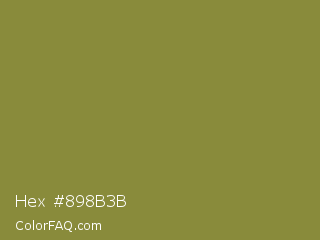 Hex #898b3b Color is a normal yellow color and the nearest color is Sycamore #908d39. Hex code #898b3b and RGB value is rgb(137,139,59). In RGB color space, this color is composed of 54% red, 55% green, 23% blue, In CMYK color space, this color is composed of 1% cyan, 0% magenta, 58% yellow , 45% black , In HSL color space, this color has a hue angle of 62° , 40% saturation and 39% lightness.