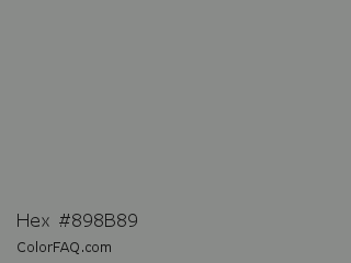 Hex #898b89 Color is a normal green color and the nearest color is Stack #8a8f8a. Hex code #898b89 and RGB value is rgb(137,139,137). In RGB color space, this color is composed of 54% red, 55% green, 54% blue, In CMYK color space, this color is composed of 1% cyan, 0% magenta, 1% yellow , 45% black , In HSL color space, this color has a hue angle of 120° , 1% saturation and 54% lightness.