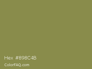 Hex #898c4b Color is a normal yellow color and the nearest color is Dark Tan #918151. Hex code #898c4b and RGB value is rgb(137,140,75). In RGB color space, this color is composed of 54% red, 55% green, 29% blue, In CMYK color space, this color is composed of 2% cyan, 0% magenta, 46% yellow , 45% black , In HSL color space, this color has a hue angle of 63° , 30% saturation and 42% lightness.