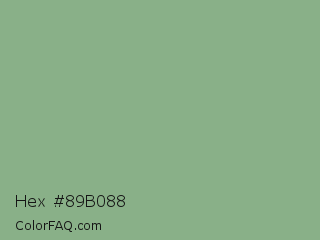 Hex #89b088 Color is a light green color and the nearest color is Envy #8ba690. Hex code #89b088 and RGB value is rgb(137,176,136). In RGB color space, this color is composed of 54% red, 69% green, 53% blue, In CMYK color space, this color is composed of 22% cyan, 0% magenta, 23% yellow , 31% black , In HSL color space, this color has a hue angle of 119° , 20% saturation and 61% lightness.