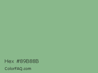 Hex #89b88b Color is a light green color and the nearest color is Dark Sea Green #8fbc8f. Hex code #89b88b and RGB value is rgb(137,184,139). In RGB color space, this color is composed of 54% red, 72% green, 55% blue, In CMYK color space, this color is composed of 26% cyan, 0% magenta, 24% yellow , 28% black , In HSL color space, this color has a hue angle of 123° , 25% saturation and 63% lightness.