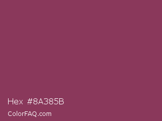 Hex #8a385b Color is a normal rose color and the nearest color is Quinacridone Magenta #8e3a59. Hex code #8a385b and RGB value is rgb(138,56,91). In RGB color space, this color is composed of 54% red, 22% green, 36% blue, In CMYK color space, this color is composed of 0% cyan, 59% magenta, 34% yellow , 46% black , In HSL color space, this color has a hue angle of 334° , 42% saturation and 38% lightness.