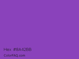 Hex #8a42bb Color is a normal purple color and the nearest color is Purpureus #9a4eae. Hex code #8a42bb and RGB value is rgb(138,66,187). In RGB color space, this color is composed of 54% red, 26% green, 73% blue, In CMYK color space, this color is composed of 26% cyan, 65% magenta, 0% yellow , 27% black , In HSL color space, this color has a hue angle of 276° , 48% saturation and 50% lightness.