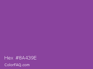 Hex #8a439e Color is a normal purple color and the nearest color is Vivid Violet #803790. Hex code #8a439e and RGB value is rgb(138,67,158). In RGB color space, this color is composed of 54% red, 26% green, 62% blue, In CMYK color space, this color is composed of 13% cyan, 58% magenta, 0% yellow , 38% black , In HSL color space, this color has a hue angle of 287° , 40% saturation and 44% lightness.