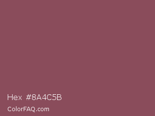 Hex #8a4c5b Color is a normal red color and the nearest color is Deep Ruby #843f5b. Hex code #8a4c5b and RGB value is rgb(138,76,91). In RGB color space, this color is composed of 54% red, 30% green, 36% blue, In CMYK color space, this color is composed of 0% cyan, 45% magenta, 34% yellow , 46% black , In HSL color space, this color has a hue angle of 345° , 29% saturation and 42% lightness.