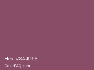 Hex #8a4d68 Color is a normal rose color and the nearest color is Twilight Lavender #8a496b. Hex code #8a4d68 and RGB value is rgb(138,77,104). In RGB color space, this color is composed of 54% red, 30% green, 41% blue, In CMYK color space, this color is composed of 0% cyan, 44% magenta, 25% yellow , 46% black , In HSL color space, this color has a hue angle of 333° , 28% saturation and 42% lightness.