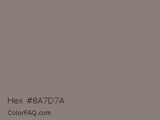Hex #8a7d7a Color is a normal red color and the nearest color is Hurricane #877c7b. Hex code #8a7d7a and RGB value is rgb(138,125,122). In RGB color space, this color is composed of 54% red, 49% green, 48% blue, In CMYK color space, this color is composed of 0% cyan, 9% magenta, 12% yellow , 46% black , In HSL color space, this color has a hue angle of 11° , 6% saturation and 51% lightness.