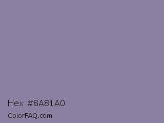 Hex #8a81a0 Color is a normal indigo color and the nearest color is Roman Silver #838996. Hex code #8a81a0 and RGB value is rgb(138,129,160). In RGB color space, this color is composed of 54% red, 51% green, 63% blue, In CMYK color space, this color is composed of 14% cyan, 19% magenta, 0% yellow , 37% black , In HSL color space, this color has a hue angle of 257° , 14% saturation and 57% lightness.