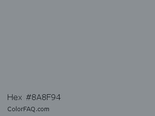 Hex #8a8f94 Color is a normal blue color and the nearest color is Oslo Gray #878d91. Hex code #8a8f94 and RGB value is rgb(138,143,148). In RGB color space, this color is composed of 54% red, 56% green, 58% blue, In CMYK color space, this color is composed of 7% cyan, 3% magenta, 0% yellow , 42% black , In HSL color space, this color has a hue angle of 210° , 4% saturation and 56% lightness.