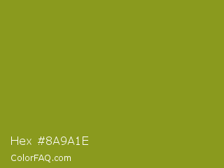 Hex #8a9a1e Color is a normal yellow color and the nearest color is Trendy Green #7c881a. Hex code #8a9a1e and RGB value is rgb(138,154,30). In RGB color space, this color is composed of 54% red, 60% green, 12% blue, In CMYK color space, this color is composed of 10% cyan, 0% magenta, 81% yellow , 40% black , In HSL color space, this color has a hue angle of 68° , 67% saturation and 36% lightness.