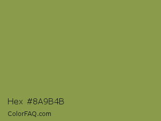 Hex #8a9b4b Color is a normal lime color and the nearest color is Moss Green #8a9a5b. Hex code #8a9b4b and RGB value is rgb(138,155,75). In RGB color space, this color is composed of 54% red, 61% green, 29% blue, In CMYK color space, this color is composed of 11% cyan, 0% magenta, 52% yellow , 39% black , In HSL color space, this color has a hue angle of 73° , 35% saturation and 45% lightness.
